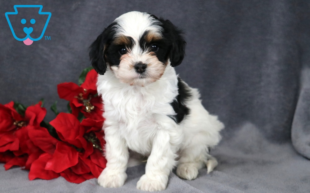 Nevon is a spunky little Cavapoo with a heart as big as his fluffy curls. Always ready for fun, he bounces through life with an irresistible mix of curiosity and charm. He is incredibly social and he absolutely lives for playtime with kids. This little guy is vet checked, vaccinated, wormed, plus the breeder provides a 1 year genetic health guarantee. His momma is a Cavalier (Precious – 20lbs.) & daddy is a Mini Poodle (Hunter – 12lbs.). Nevon brings joy and energy to every moment.