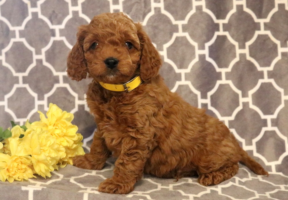 Paws is a lovable Cavapoo puppy with a cheerful personality and an affectionate nature. He has been raised with children, which has helped him grow into a confident, friendly pup who will love being part of your family life. This cutie is vet checked, vaccinated, wormed, and comes with a 1 year genetic health guarantee that is provided by the breeder. His parents are Jackie (Cavapoo – 16lbs) & Toby (Mini Poodle – 14lbs). Paws would be a wonderful addition to a family looking for a puppy who’s already comfortable with children and eager to bond with his forever people.