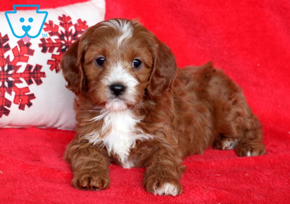 Paws is a charming Cavapoo puppy with a bubbly, outgoing personality. He has been raised in a loving environment and is well-accustomed to being around children. This cutie loves interaction, playtime, and being around people. He is vet checked, vaccinated, wormed, and comes with a 1 year genetic health guarantee that is provided by the breeder. His parents are Heather (Cavalier – 18lbs) & Rodger (Mini Poodle – 15lbs). With his sweet disposition and social spirit, Paws is ready to become a treasured member of his forever family.