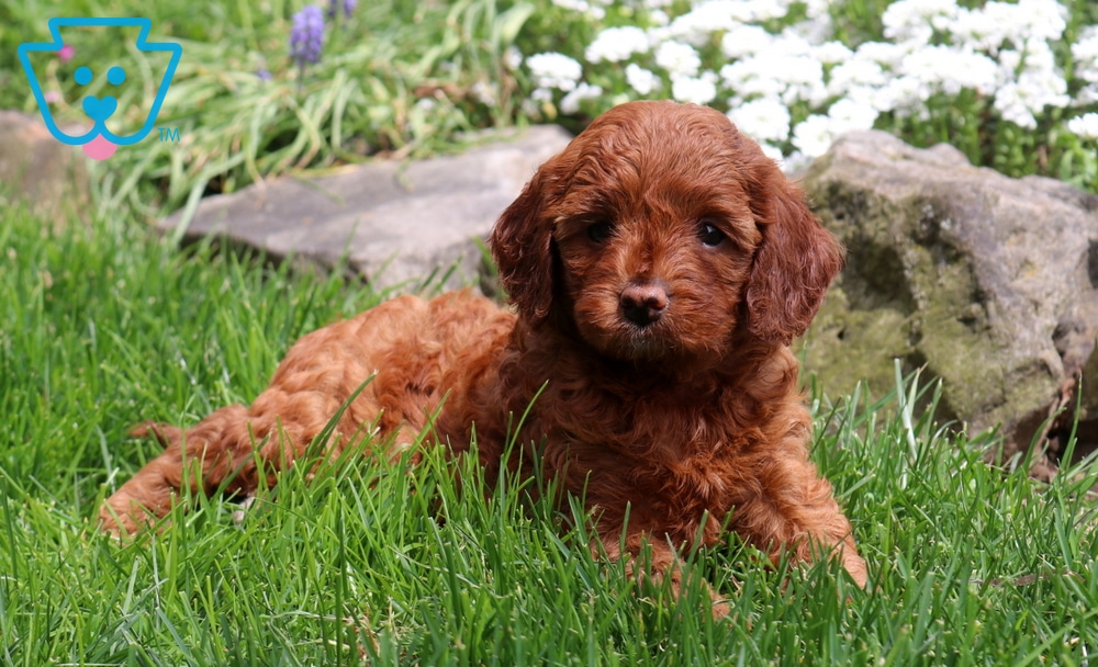 With her cheerful spirit, Penelope the Cavapoo brings joy to everyone she meets. She’s incredibly social, loves being around people and especially enjoys spending time with children. Penelope is vet checked, vaccinated, wormed, plus the breeder provides a 1 year genetic health guarantee. Her momma is a Cavapoo (Gigi – 17lbs.) & daddy is a Mini Poodle (Rusty – 14lbs.). This cutie’s affectionate personality shines through in everything she does.