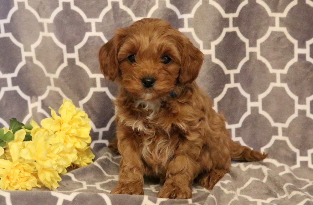 Pugsly is a lovable Cavapoo puppy with a cheerful personality and an affectionate nature. He has been raised with children, which has helped him grow into a confident, friendly pup who will love being part of your family life. This cutie is vet checked, vaccinated, wormed, and comes with a 1 year genetic health guarantee that is provided by the breeder. His parents are Jackie (Cavapoo – 16lbs) & Toby (Mini Poodle – 14lbs). Pugsly would be a wonderful addition to a family looking for a puppy who’s already comfortable with children and eager to bond with his forever people.