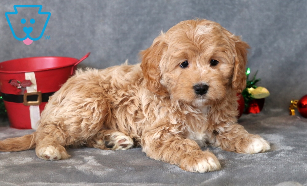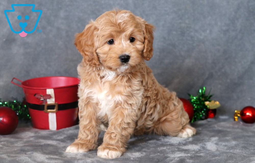 Pumpkin is a sweet and affectionate Cavapoo with a heart as soft as his curls. He adores children and is always ready for playtime. Social by nature, Pumpkin loves meeting new people and furry friends alike. This cutie is vet checked, vaccinated, wormed, plus the breeder provides a 3 year genetic health guarantee. His momma is a Cavalier (Princess – 20lbs.) & daddy is a Mini Poodle (Asher – 16lbs.). His gentle temperament, playful spirit, and endless love make him the perfect companion for families.