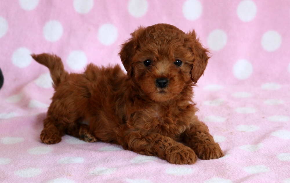 Rayna is a lovely Cavapoo puppy with a happy, outgoing personality that makes her a joy to be around. She is very social and truly enjoys spending time with the grandchildren. This cutie is vet checked, vaccinated, wormed, plus the breeder provides a 1 year genetic health guarantee. Her momma is a Cavapoo (Marla) & daddy is a Mini Poodle. Rayna is the perfect companion for a family looking for a sweet and playful pup.