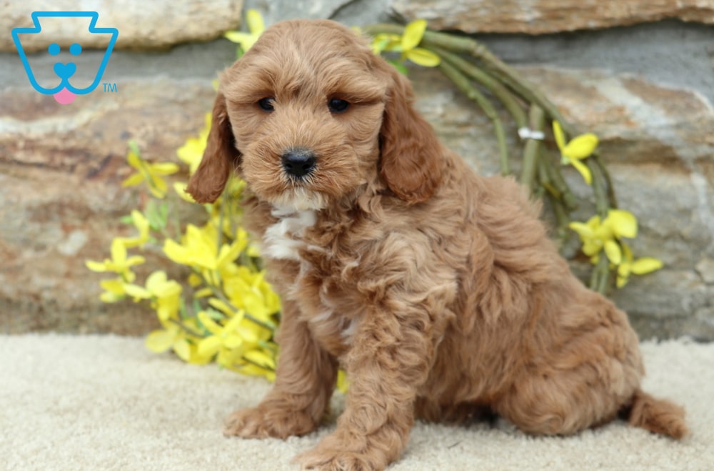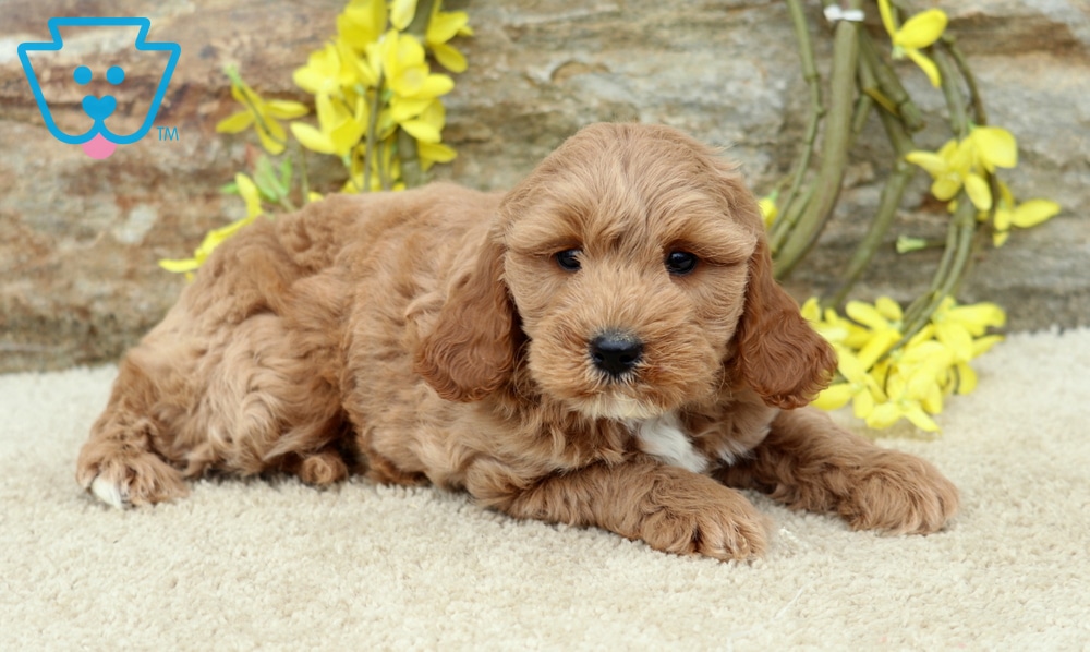 Sid is a special Cavapoo with a heart full of love and a personality that shines wherever he goes. He’s incredibly social and thrives on being around people, especially kids. Sid is vet checked, vaccinated, wormed, plus the breeder provides a 1 year genetic health guarantee. His momma is a Cavapoo (Charming Elsie) & daddy is a Mini Poodle (Rusty Red – 12lbs.). This cuties friendly nature and gentle spirit make him a wonderful companion for a family looking for a loving and lively pup.