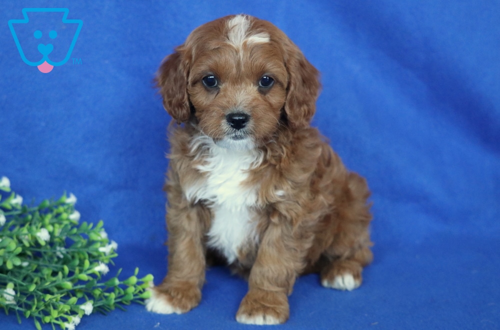 Solly is a gorgeous Cavapoo with a bright, lovable personality that shines wherever he goes. Naturally social, he thrives on companionship and absolutely adores children. This loving pooch is vet checked, vaccinated, wormed, plus the breeder provides a 1 year genetic health guarantee. His momma is a Cavalier (Starburst – 18lbs.) & daddy is a Mini Poodle (Rodger – 15lbs.). Solly is the kind of dog who quickly becomes the heart of any home.