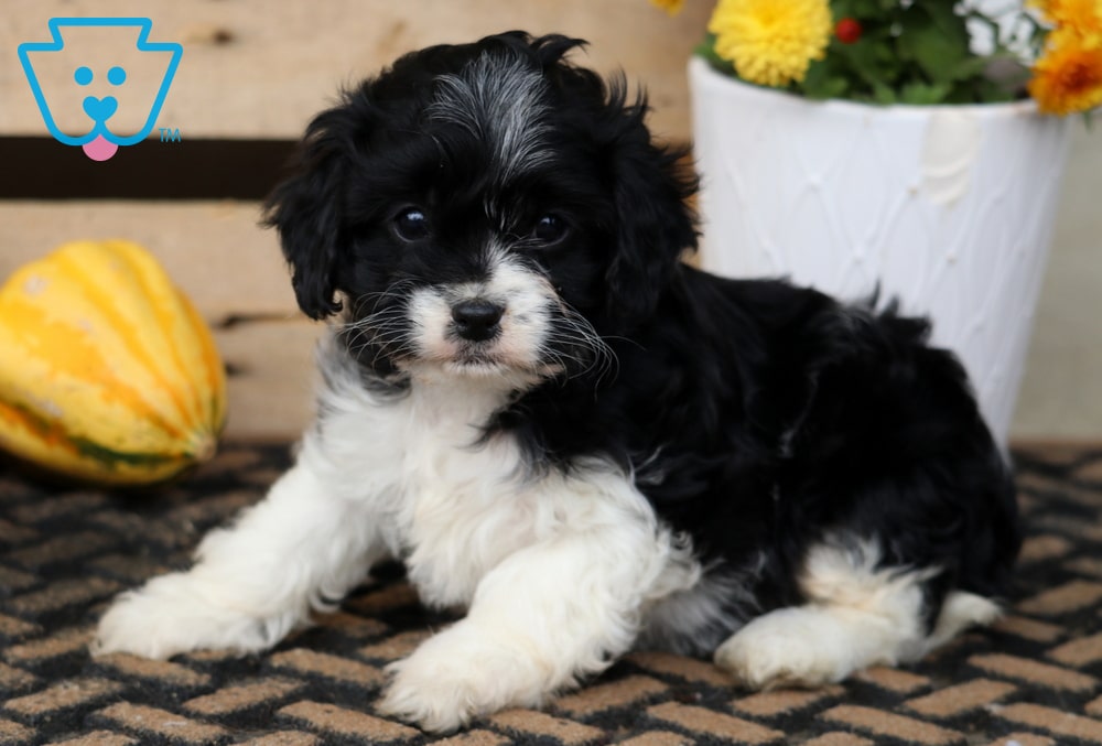 Taffy is a sweet and playful Cavapoo with a heart full of love! She’s incredibly social and adores making new friends—both furry and human. Always up for a game of fetch or a snuggle session, Taffy especially loves spending time with kids. She is vet checked, vaccinated, wormed, plus the breeder provides a 1 year genetic health guarantee. Her momma is a Cavalier (Scarlet – 12lbs.) & daddy is a Mini Poodle (Kindal – 12lbs.). Her gentle nature and happy spirit make her the perfect companion for families.
