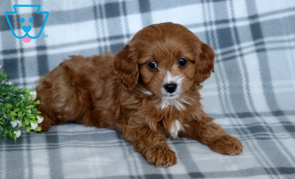 Trixie is a wonderful Cavapoo with a cheerful, outgoing personality that makes her a joy to be around. She’s as social as can be and absolutely adores children. Trixie is vet checked, vaccinated, wormed, plus the breeder provides a 1 year genetic health guarantee. Her momma is a Cavalier (Twinkle – 18lbs.) & daddy is a Mini Poodle (Rodger – 15lbs.). She has a special way of bringing smiles to everyone she meets.