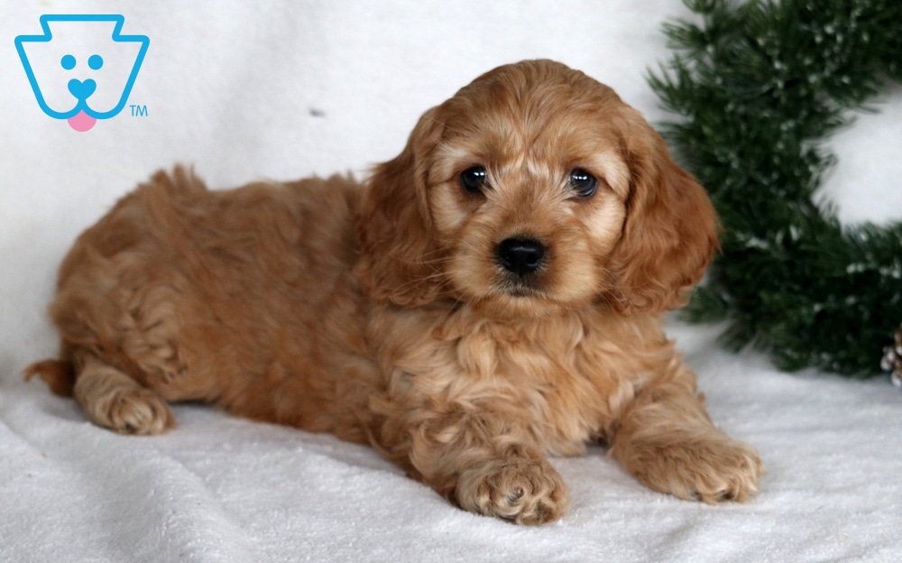 Ace is a lovable Cockapoo with a heart as big as his playful energy. Friendly and incredibly social, he quickly becomes the center of attention wherever he goes. Ace especially adores children— he’s happiest when he’s part of the fun. He is vet checked, vaccinated, wormed, plus the breeder provides a 1 year genetic health guarantee. His momma is a Cocker Spaniel (Pansy – 24lbs.) & daddy is a Toy Poodle (Jasper – 9lbs.). This cutie brings laughter, comfort, and companionship to everyone he meets.