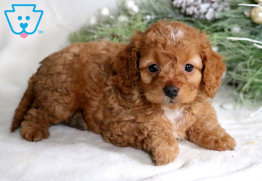 Charlie is an absolutely lovable Cockapoo puppy with a friendly, social personality that wins everyone over! He’s been raised with kids, so he’s used to lots of playtime, snuggles, and interaction. This little guy thrives on attention and loves being right by your side. He is vet checked, vaccinated, wormed, and comes with a 1 year genetic health guarantee that is provided by the breeder. His parents are Lucky (Cocker Spaniel – 20lbs) & King (Mini Poodle – 15lbs). If you’re searching for a sweet & social Cockapoo puppy who loves to be loved, Charlie is your perfect match!