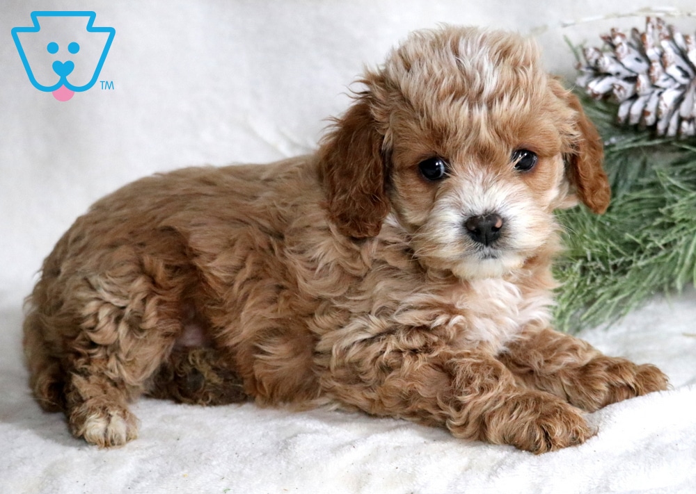 Cheerio is an absolutely lovable Cockapoo puppy with a friendly, social personality that wins everyone over! He’s been raised with kids, so he’s used to lots of playtime, snuggles, and interaction. This little guy thrives on attention and loves being right by your side. He is vet checked, vaccinated, wormed, and comes with a 1 year genetic health guarantee that is provided by the breeder. His parents are Lucky (Cocker Spaniel – 20lbs) & King (Mini Poodle – 15lbs). If you’re searching for a sweet & social Cockapoo puppy who loves to be loved, Cheerio is your perfect match!