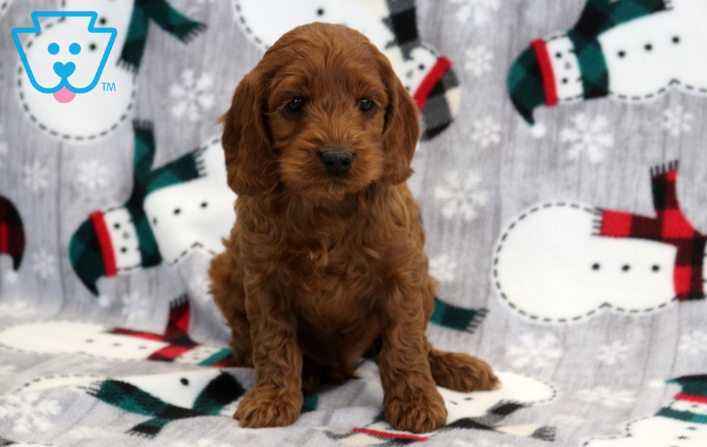 Meet Karlson — a lovable, social Cockapoo with a heart as fluffy as his curls. Known for his friendly nature and gentle spirit, Karlson adores meeting new people. He is vet checked, vaccinated, wormed & health guaranteed by the breeder. His momma is a Cocker Spaniel (Kaylinda Lou – 20-25lbs.) & daddy is a Mini Poodle (15-20lbs.). This cutie brings warmth, joy, and a wagging tail to every moment.