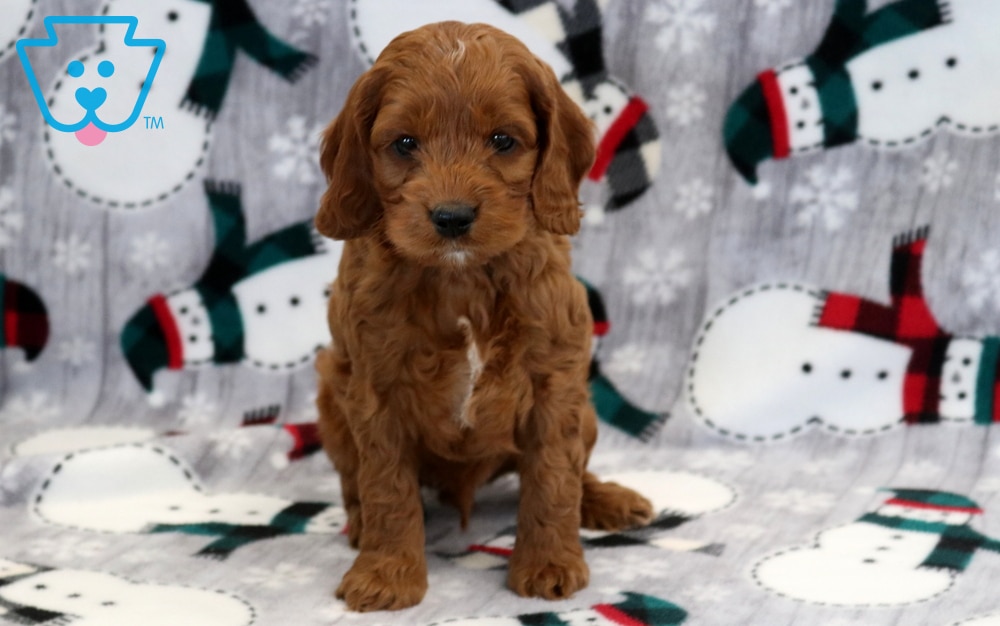 Meet Kynford — a lovable, social Cockapoo with a heart as fluffy as his curls. Known for his friendly nature and gentle spirit, Kynford adores meeting new people. He is vet checked, vaccinated, wormed & health guaranteed by the breeder. His momma is a Cocker Spaniel (Kaylinda Lou – 20-25lbs.) & daddy is a Mini Poodle (15-20lbs.). This cutie brings warmth, joy, and a wagging tail to every moment.