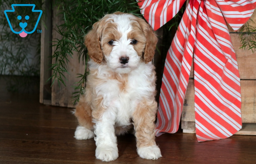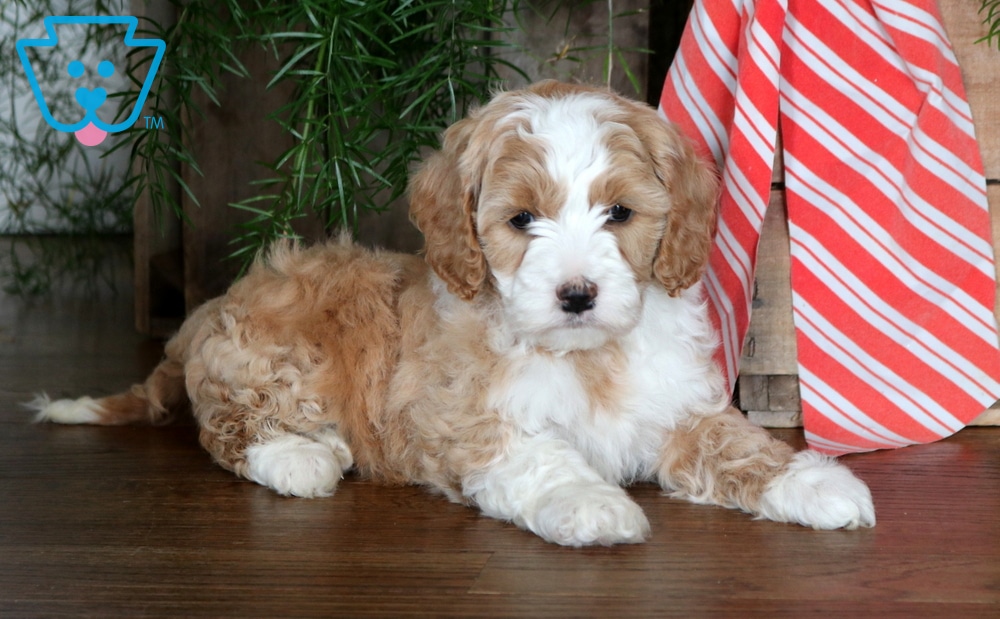 Navy is a stunning Cockapoo known for her friendly nature and social personality. She thrives around people and enjoys interactive play, particularly with children. Navy is vet checked, vaccinated, wormed, plus the breeder provides a 1 year genetic health guarantee. Her momma is a Cockapoo (Mariah – 18lbs.) & daddy is a Mini Poodle (Lyle – 12lbs.). Her gentle temperament and playful spirit make her a wonderful family companion.