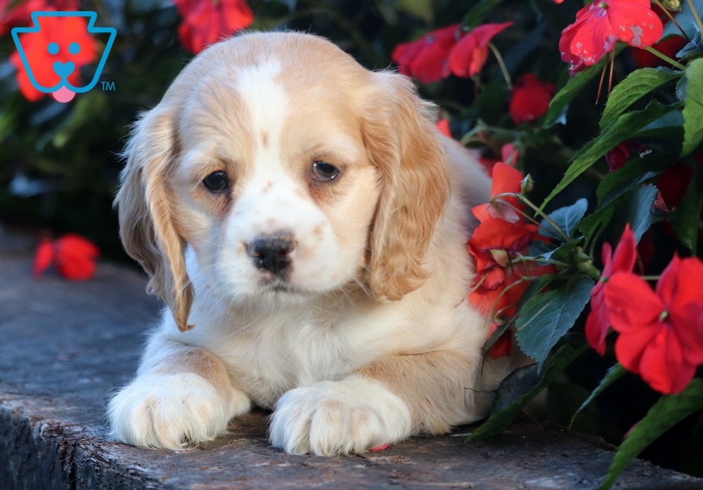 Meet Charlie, a lovable Cocker Spaniel with a heart as warm as his soft, floppy ears! He thrives on playtime—especially when it involves kids. This little fella is ACA registered, vet checked, vaccinated, wormed & health guaranteed by the breeder. His parents are Gem (18-20lbs.) & Joey (20lbs.). Charlie is happiest when he’s with her tiny humans, making memories and sharing unconditional love.