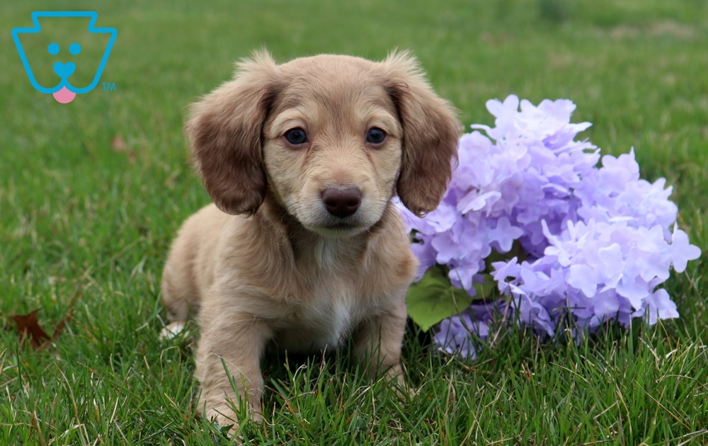 Annie is a sweet Mini Dachshund with a big heart packed into a tiny body. She absolutely adores playing with children, always ready to join in on the games. This little gal is APRI registered, vet checked, vaccinated, wormed, plus the breeder provides a 1 year genetic health guarantee. Her parents are Nutella Bell (12lbs.) & Fluffy (11lbs.). Annie’s playful spirit and affectionate personality make her a joyful companion and a constant source of smiles.