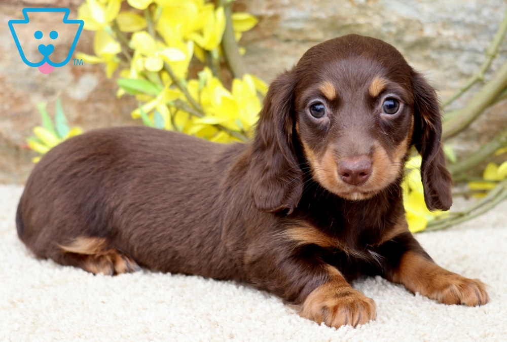 Meet Dallas, a social butterfly who is looking for his fur-ever home! If you’re looking for a Mini Dachshund puppy who’s full of charm and loves people, Dallas is the one! This sweet little guy has been raised with children, so he’s used to hugs, giggles, and lots of attention. He is ACA registered, vet checked, vaccinated, wormed, and comes with a 1 year genetic health guarantee that is provided by the breeder. His parents are Charming Lilac (11lbs) & Harley (10lbs). Dallas loves following you around, snuggling into your lap, and exploring the world with his adorable little trot!