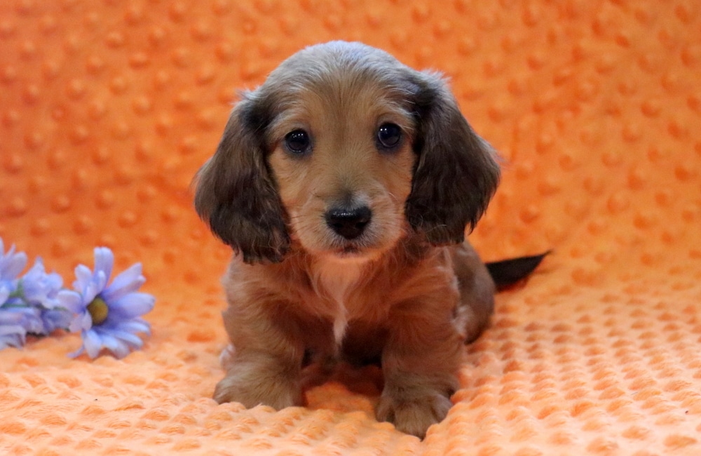 Rex is a super social Mini Dachshund with a big personality packed into his tiny frame. He’s full of energy, loves to be the center of attention, and never turns down a game of fetch or a cuddle session. This sweet boy is APRI registered, vet checked, vaccinated, wormed, plus the breeder provides a 1 year genetic health guarantee. His parents are Daria (13lbs) & Fluffy (11lbs). Rex adores children and is happiest when he’s running around the yard. This sweet pooch brings joy wherever he goes.