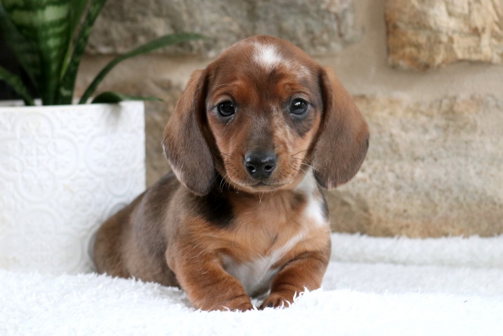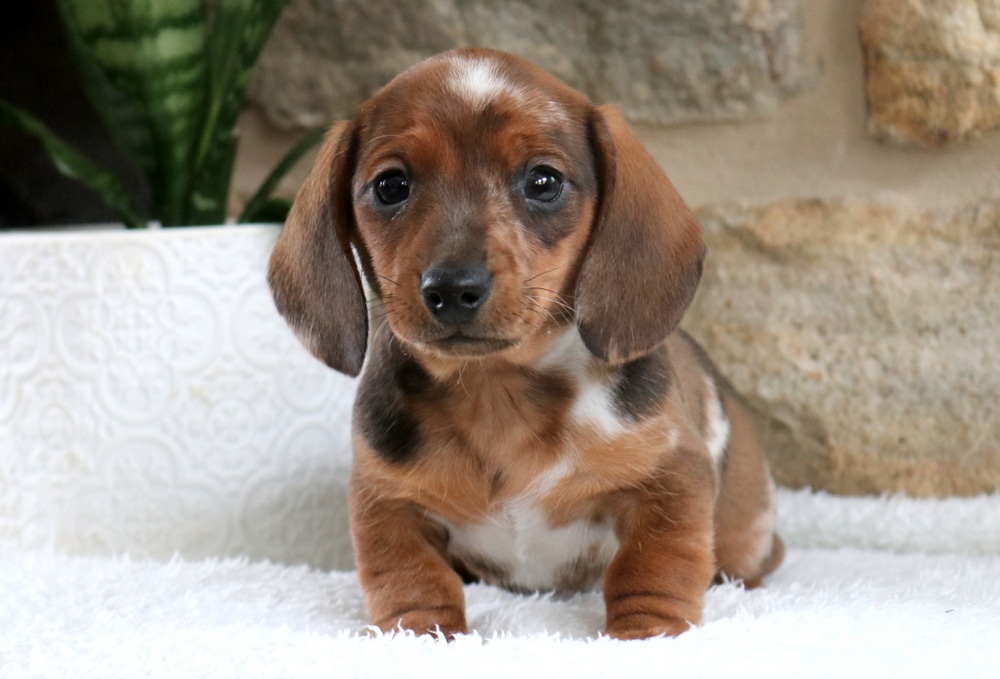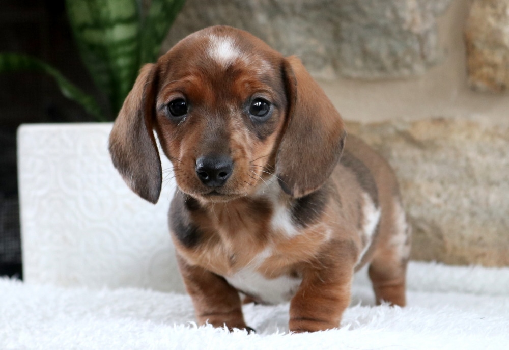 Speedy is an adorable Mini Dachshund puppy with a big personality packed into a tiny body! This sweet little guy is very social and absolutely loves being around people. He has been lovingly raised around children, making him a wonderful fit for a family home. He is ACA registered, vet checked, vaccinated, wormed, and comes with a 1 year genetic health guarantee that is provided by the breeder. His momma is Mya (10lbs). If you’re looking for a loving Mini Dachshund puppy, Speedy can’t wait to meet you!