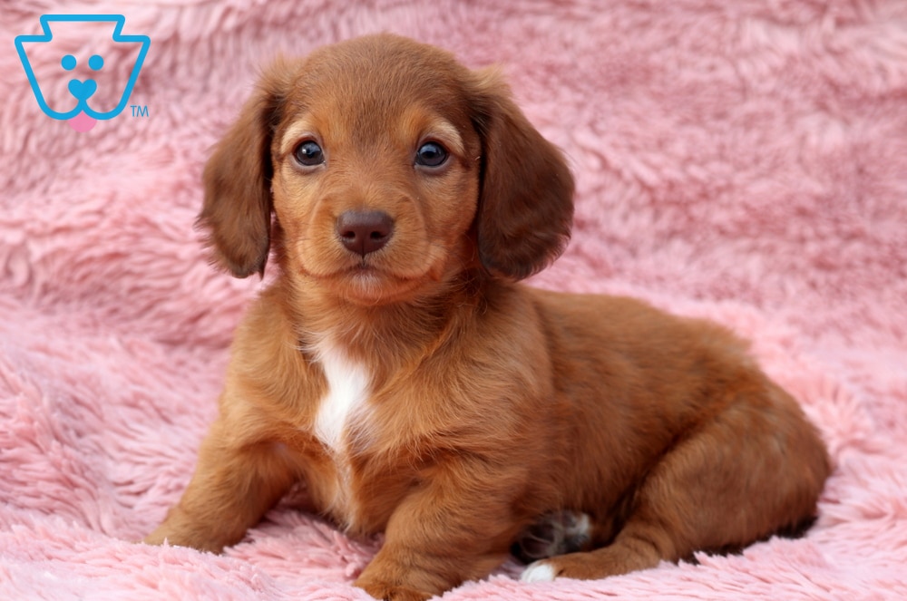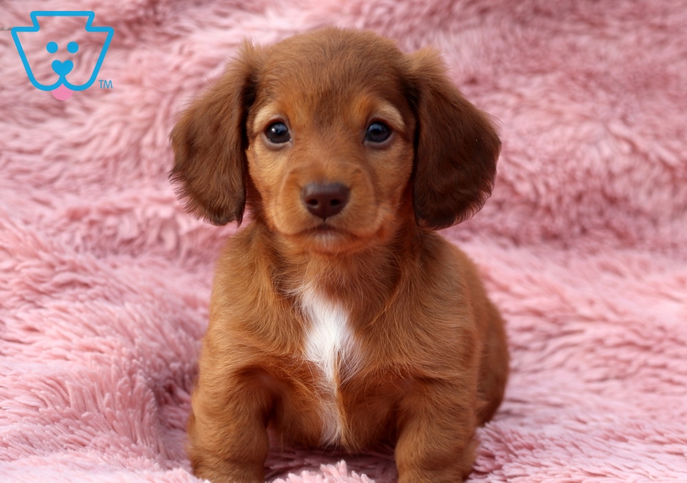 Willow is a super social Mini Dachshund pup with a big personality packed into her tiny frame. She’s full of energy, loves to be the center of attention, and never turns down a game of fetch or a cuddle session. This sweet girl is APRI registered, vet checked, vaccinated, wormed, plus the breeder provides a 1 year genetic health guarantee. Her parents are Cocoa (91/2lbs) & Fluffy (11lbs). Willow adores children and is happiest when she’s running around the yard. This sweet pooch brings joy wherever she goes.