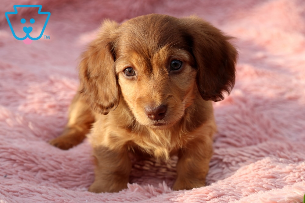 Wish is a super social Mini Dachshund pup with a big personality packed into her tiny frame. She’s full of energy, loves to be the center of attention, and never turns down a game of fetch or a cuddle session. This sweet girl is APRI registered, vet checked, vaccinated, wormed, plus the breeder provides a 1 year genetic health guarantee. Her parents are Cocoa (91/2lbs) & Fluffy (11lbs). Wish adores children and is happiest when she’s running around the yard. This sweet pooch brings joy wherever she goes.