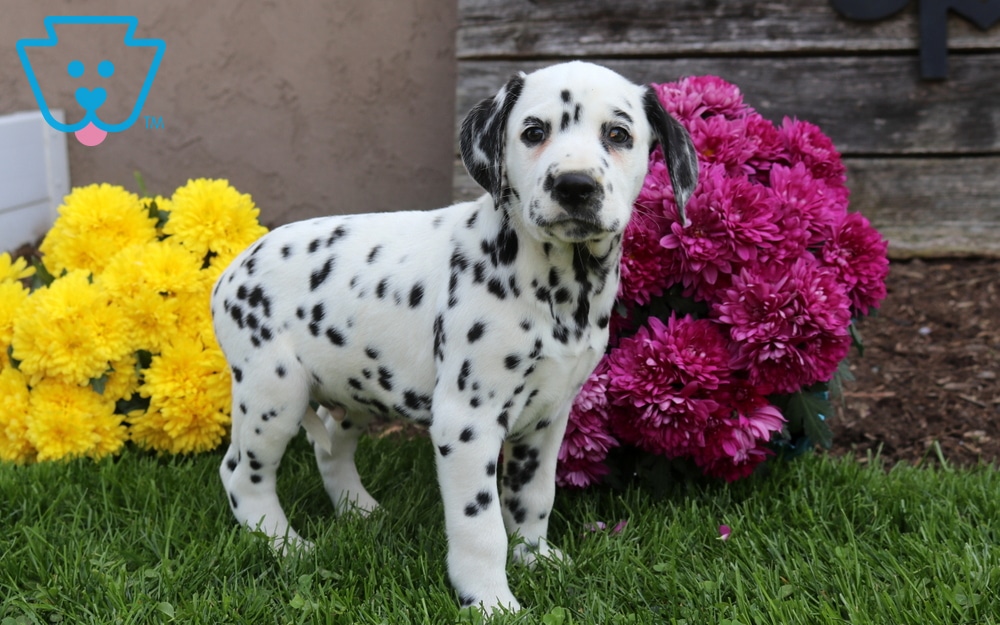 Rolly is a stunning Dalmatian with a coat full of perfectly placed spots and a personality just as striking. This social pup thrives on attention and is especially wonderful with children. He is AKC registered, vet checked, vaccinated, wormed, plus the breeder provides a 1 year genetic health guarantee. His parents are Kiela & Hudson. Rolly makes every moment brighter and every day more fun.