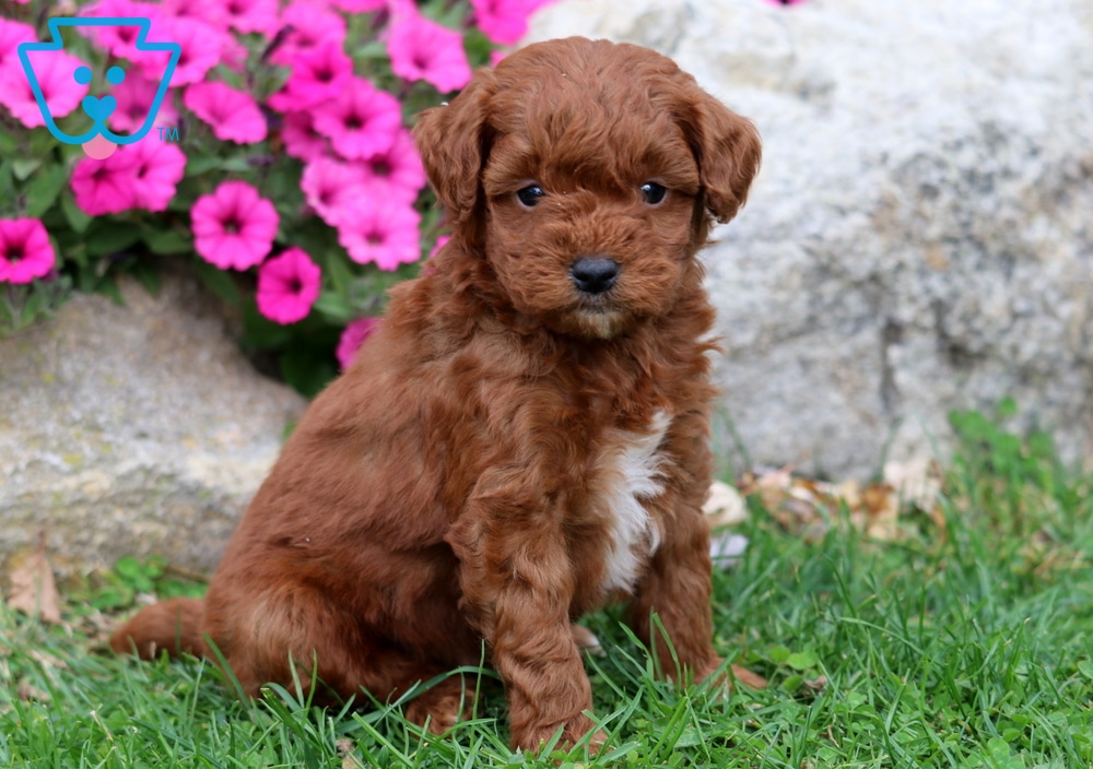 This adorable Double Doodle puppy is as social and lovable as they come! Mason has been raised with kids and absolutely adores playtime and attention. His friendly personality and gentle nature make him a wonderful fit for families looking for a loyal companion. He is vet checked, vaccinated, wormed, and comes with a 1 year genetic health guarantee that is provided by the breeder. His parents are Libby (Mini Labradoodle – 18lbs) & Kyle (Mini Goldendoodle – 22lbs). Whether he’s playing in the yard or cuddling with a kiddo, Mason is always happiest when surrounded by people he loves.