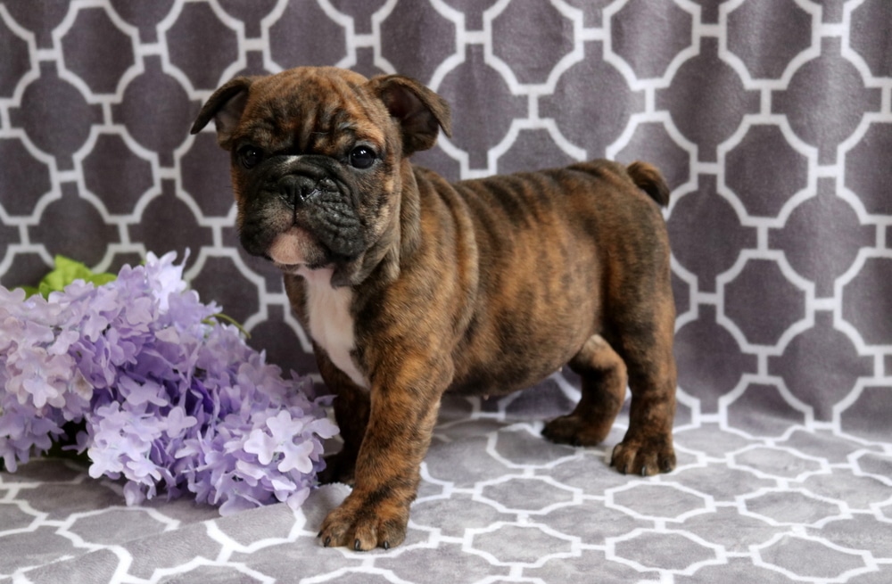 Buckwheat is an amazing English Bulldog with a big personality and an even bigger heart! This handsome boy is super social and absolutely loves being around people. He is AKC registered, vet checked, vaccinated, wormed, plus the breeder provides a 1 year genetic health guarantee. His parents are Jasmine (50lbs.) & Sammy (70lbs.). Buckwheat is happiest when he’s part of the action and getting plenty of love and belly rubs.