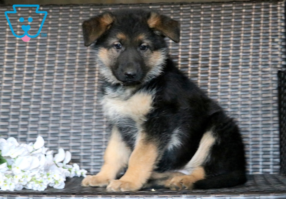 Lacey is a lovely German Shepherd puppy with a big heart and an even bigger personality. She’s super social and always ready to make new friends…whether they walk on two legs or four! This cutie has been lovingly raised with children, making her wonderfully social, friendly, and well-adjusted. She is AKC registered, vet checked, vaccinated, wormed, plus the breeder provides a 1 year genetic health guarantee. Her parents are Harmony (75lbs) & Rusty Macho (90lbs). If you’re searching for a fun-loving, kid-friendly puppy who will bring joy and excitement into your home, Lacey could be the perfect match!