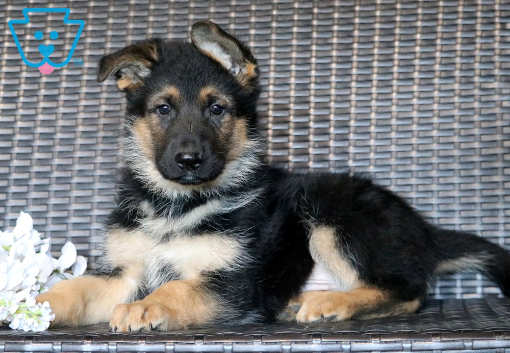 Leo is a lovely German Shepherd puppy with a big heart and an even bigger personality. He’s super social and always ready to make new friends…whether they walk on two legs or four! This cutie has been lovingly raised with children, making him wonderfully social, friendly, and well-adjusted. He is AKC registered, vet checked, vaccinated, wormed, plus the breeder provides a 1 year genetic health guarantee. His parents are Harmony (75lbs) & Rusty Macho (90lbs). If you’re searching for a fun-loving, kid-friendly puppy who will bring joy and excitement into your home, Leo could be the perfect match!
