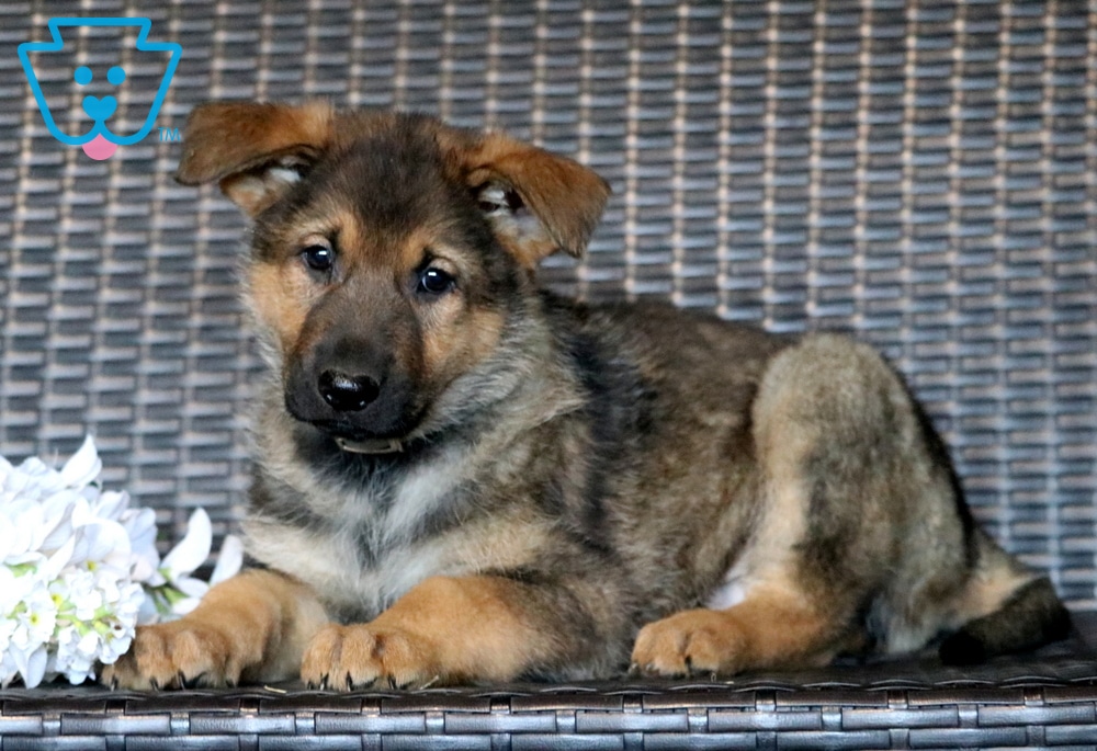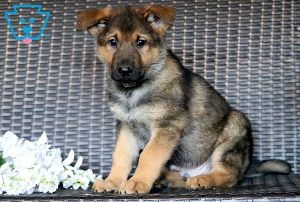 Logan is a lovely German Shepherd puppy with a big heart and an even bigger personality. He’s super social and always ready to make new friends…whether they walk on two legs or four! This cutie has been lovingly raised with children, making him wonderfully social, friendly, and well-adjusted. He is AKC registered, vet checked, vaccinated, wormed, plus the breeder provides a 1 year genetic health guarantee. His parents are Harmony (75lbs) & Rusty Macho (90lbs). If you’re searching for a fun-loving, kid-friendly puppy who will bring joy and excitement into your home, Logan could be the perfect match!