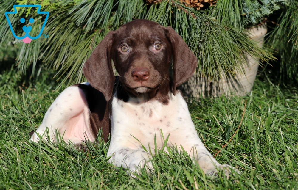 Springer is a strikingly handsome German Shorthaired Pointer with a heart as big as his boundless energy. This sweet fella thrives around children. But what truly makes Springer special is his loving, social nature. He is vet checked, vaccinated, wormed & health guaranteed by the breeder. His parents are Truffles & Remington. He is the perfect adventure buddy and family friend.
