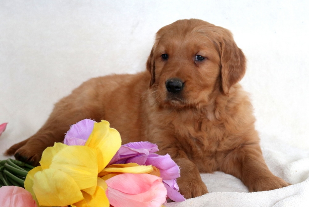Jasper is a precious Golden Retriever puppy who has been raised with children. He has a sweet, gentle nature and warms up to people quickly. Jasper is AKC registered, vet checked, vaccinated, wormed, and comes with a 1 year genetic health guarantee that is provided by the breeder. His parents are Mindy & Captain Lee. This pooch is a wonderful choice for a family looking for a calm, loving companion!