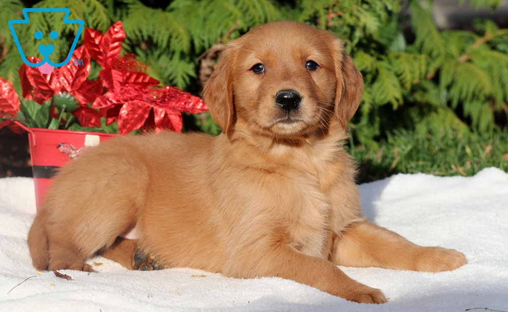 Paris is a loving Golden Retriever with a warm personality and an endless enthusiasm for family fun. She adores playing with kids. A true social butterfly, Paris lights up every room she enters and makes friends with everyone she meets. This cutie is ACA registered, vet checked, vaccinated, wormed, plus the breeder provides a 1 year genetic health guarantee. Her parents are Twila (80lbs.) & Ken (90lbs.). She’s the perfect companion for families seeking a joyful and affectionate four-legged friend.