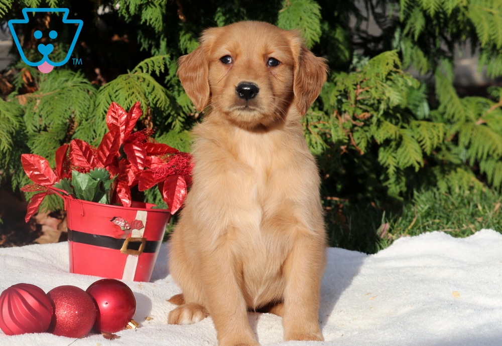 Patty is a loving Golden Retriever with a warm personality and an endless enthusiasm for family fun. She adores playing with kids. A true social butterfly, Patty lights up every room she enters and makes friends with everyone she meets. This cutie is ACA registered, vet checked, vaccinated, wormed, plus the breeder provides a 1 year genetic health guarantee. Her parents are Twila (80lbs.) & Ken (90lbs.). She’s the perfect companion for families seeking a joyful and affectionate four-legged friend.
