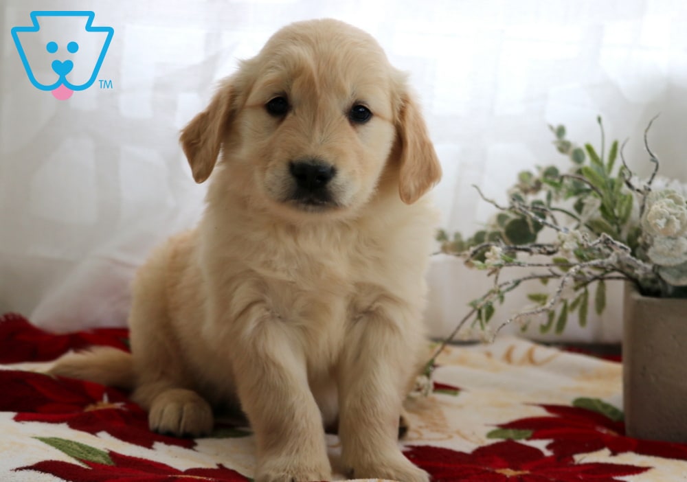 Rolo is a gorgeous Golden Retriever with a soft, sweet soul. He warms up gradually, but once he feels comfortable, his affectionate nature will shine. This cutie has been around kids and does well with their calm, friendly energy. Rolo can be AKC registered, he is vet checked, vaccinated, wormed, plus the breeder provides a 1 year genetic health guarantee. His parents are Cindy Marie (80lbs.) & Woodland Wesley (85lbs.). He is the perfect match for someone who appreciates a tender-hearted, loyal companion.
