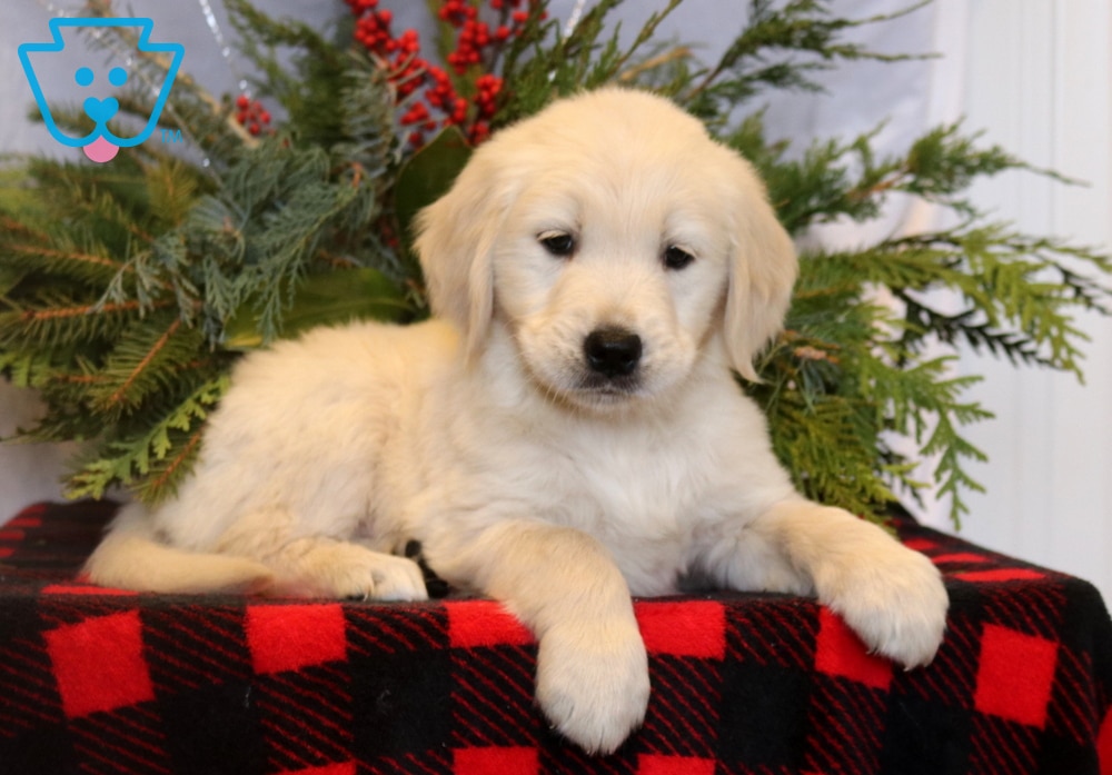 Scooby is a sweet Golden Retriever puppy with a heart as golden as his coat. He is raised with kids, helping him grow into a friendly, social, and confident little guy. This pooch is AKC registered, vet checked, vaccinated, wormed, and comes with a 1 year genetic health guarantee. His parents are Rosie (60lbs) & Gold Star (65lbs). Whether it’s playtime with the kids, or quiet cuddle moments, Scooby is ready to bring joy and loyalty into his forever home.