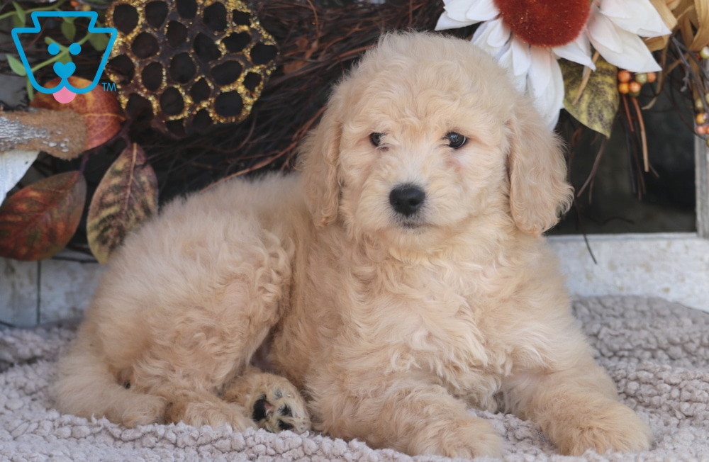 Bell is a cheerful Goldendoodle puppy with a big heart and an even bigger personality! She’s super social, loves to be around people, and never turns down playtime or attention. Bell is used to lots of love and interaction, making her a wonderful fit for families. She is vet checked, vaccinated, wormed, and comes with a 1 year genetic health guarantee that is provided by the breeder. Her parents are Sarah (Goldendoodle – 60lbs) & Lonnie (Goldendoodle – 65lbs). This pups happy, outgoing nature and gentle temperament are sure to fill your home with warmth, laughter, and unconditional love.