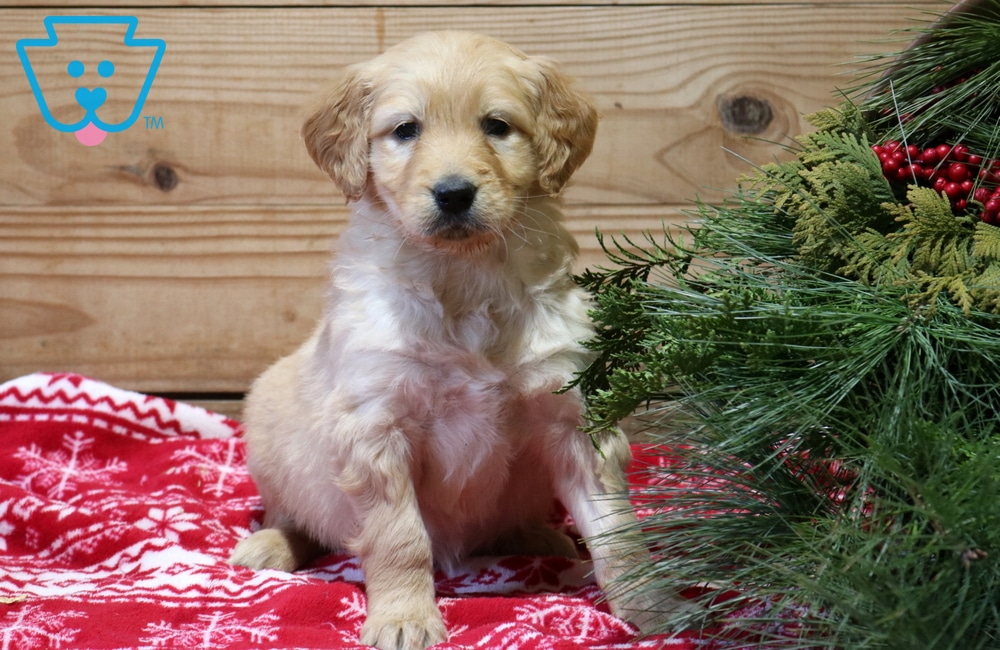 Farrah is a gorgeous Goldendoodle with a heart as beautiful as her coat. She is wonderfully social and loves being around people. This cutie is vet checked, vaccinated, wormed, plus the breeder provides a 1 year genetic health guarantee. Her momma is a Golden Retriever (Scarlet – 70lbs.) & daddy is a Goldendoodle (Scout – 55lbs.). Farrah is the perfect example of the loving and friendly personality Goldendoodles are known for.