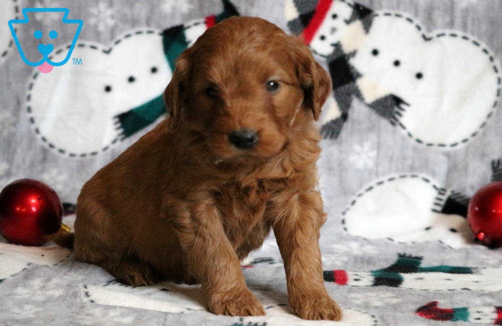 Gem is a gorgeous Goldendoodle with a heart as golden as her coat. Friendly, social, and endlessly curious, she lights up every room she enters. This sweet girl is vet checked, vaccinated, wormed, plus the breeder provides a 1 year genetic health guarantee. Her momma is a Golden Retriever (Willow – 50lbs.) & daddy is a Poodle (Rusty – 30lbs.). Gem’s gentle nature and joyful spirit make her impossible not to love.