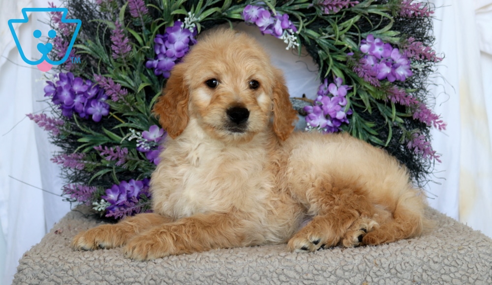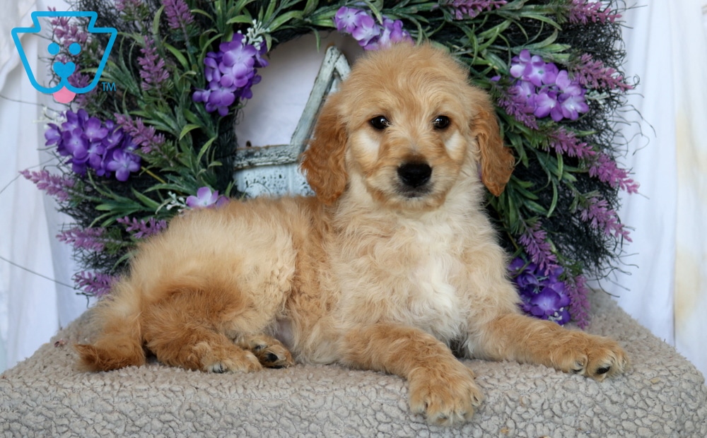 Full of life and charm, Porky is a stunning Goldendoodle who loves to play. Bursting with energy and charm, he’s incredibly social and thrives on being around people—especially kids. This cutie is vet checked, vaccinated, wormed, plus the breeder provides a 1 year genetic health guarantee. His momma is a Goldendoodle (Mandy – 75lbs.) & daddy is a Goldendoodle (Lonnie – 70lbs.). Porky brings joy and excitement wherever he goes.