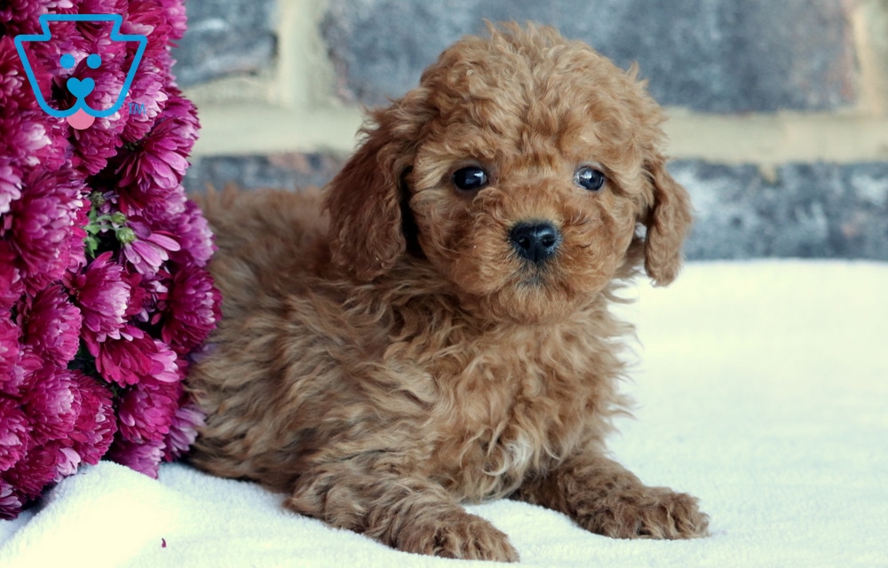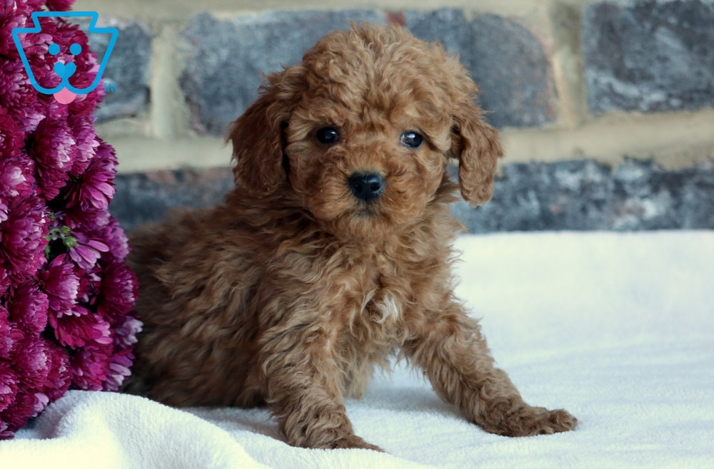 Meet Benny, a wonderful Toy Goldendoodle with a happy-go-lucky personality and a heart full of love. Playful, gentle, and endlessly friendly, he adores spending time with children. This sweet boy is vet checked, vaccinated, wormed, plus the breeder provides a 1 year genetic health guarantee. His momma is a Toy Goldendoodle (Daisy – 12lbs.) & daddy is a Mini Poodle (Berne – 15lbs.). Benny brings warmth, laughter, and love to every home and heart he touches.