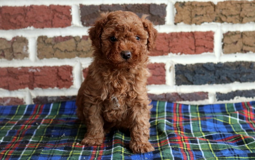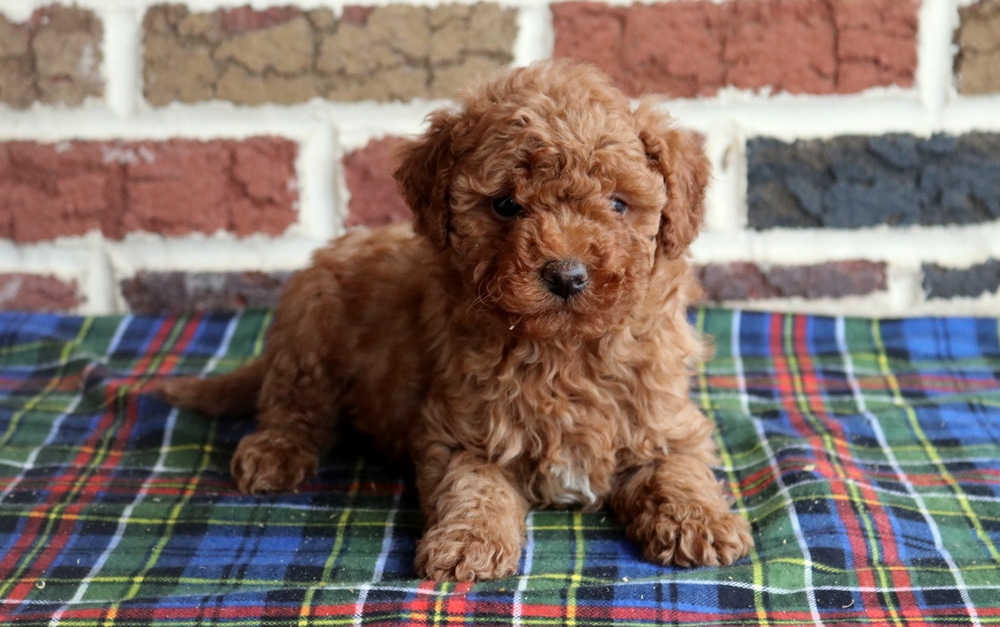 Washington is a stunning Toy Goldendoodle with a charming personality to match his good looks. Social as can be, he loves meeting new people and making friends wherever he goes. This cutie is vet checked, vaccinated, wormed, plus the breeder provides a 1 year genetic health guarantee. His momma is a Mini Goldendoodle (Stacey – 18lbs.) & daddy is a Toy Poodle (7lbs.). Washington is the perfect companion for anyone looking for a loving, friendly, and handsome furry friend.