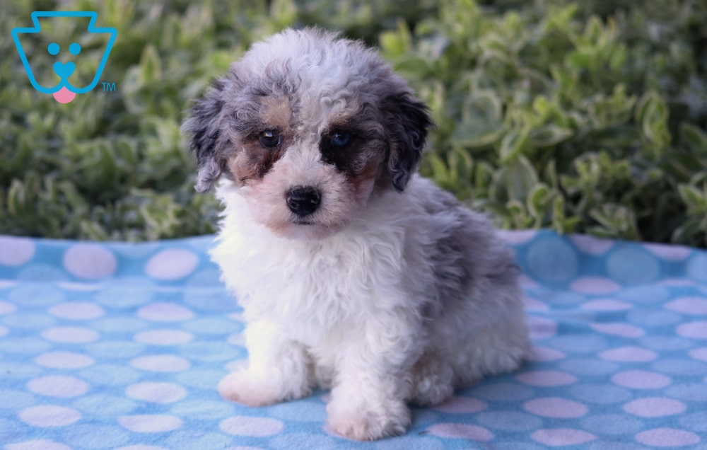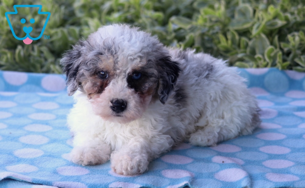 Bingo is a handsome Havapoo with a heart as big as his fluffy curls! He’s a social butterfly who loves meeting new people and thrives on being the center of attention. Bingo’s favorite thing in the world is playtime—especially with kids, where his gentle, playful energy truly shines. He is vet checked, vaccinated, wormed, plus the breeder provides a 2 year genetic health guarantee. His momma is a Mini Poodle (Holly – 15lbs.) & daddy is a Havanese (Buster – 14lbs.). He’s the perfect companion for any family looking for a sweet, social pup full of love.