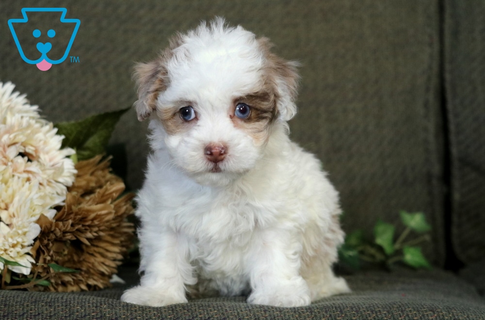 Tizzie is an adorable Havapoo with a personality as sweet as her fluffy curls. Always ready to play, explore, or snuggle, her cheerful energy fills every room she walks into. She has a special love for children, a true social butterfly making friends wherever she goes. This little girl is vet checked, vaccinated, wormed, plus the breeder provides a 2 year genetic health guarantee. Her momma is a Mini Poodle (Ivory – 12lbs.) & daddy is a Havanese (Buster – 14lbs.). Tizzie is the perfect companion for families who want a dog that brings warmth, laughter, and love to every day.