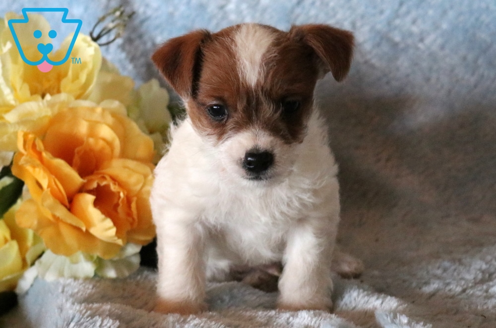 Bubba is a lovely Jackapoo with a playful spirit and a big heart. He loves running around and playing with kids, always eager to join in on the fun. This little guy is vaccinated, wormed, plus the breeder provides a 1 year genetic health guarantee. His momma is a Jack Russell (Snuggles – 12lbs.) & daddy is a Mini Poodle. Bubba brings laughter, smiles, and endless joy to everyone he meets.