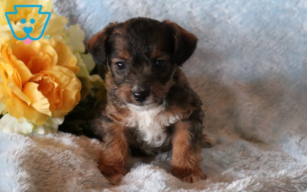 Buck is a lovely Jackapoo with a playful spirit and a big heart. He loves running around and playing with kids, always eager to join in on the fun. This little guy is vaccinated, wormed, plus the breeder provides a 1 year genetic health guarantee. His momma is a Jack Russell (Snuggles – 12lbs.) & daddy is a Mini Poodle. Buck brings laughter, smiles, and endless joy to everyone he meets.