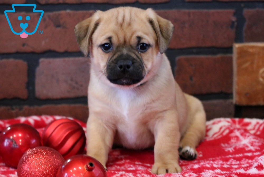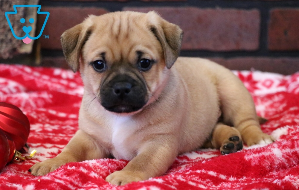 Butterfinger is a one-of-a-kind Jug with a big personality and an even bigger heart. He loves being around people and thrives on making new friends wherever he goes. Butterfinger is especially wonderful with kids. This cutie is vet checked, vaccinated, wormed, plus the breeder provides a 1 year genetic health guarantee. His momma is a Jack Russell (Sandy – around 20lbs.) & daddy is a Pug (Snickers – around 20lbs.). He’s not just a spectacular companion—he’s a beloved member of the family.