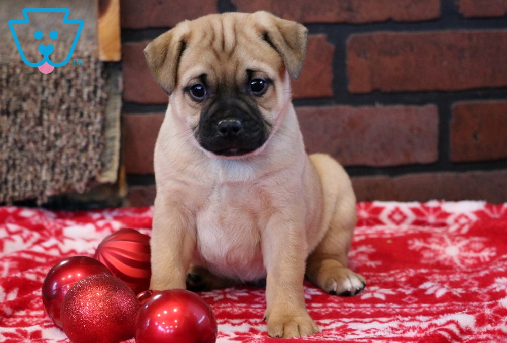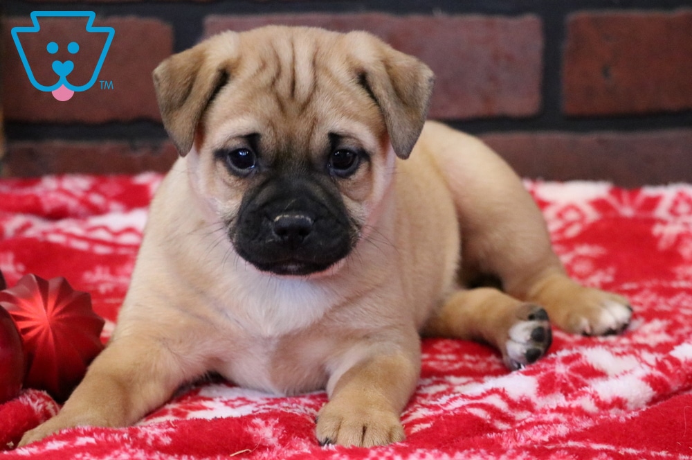 Reese is a one-of-a-kind Jug with a big personality and an even bigger heart. He loves being around people and thrives on making new friends wherever he goes. Reese is especially wonderful with kids. This cutie is vet checked, vaccinated, wormed, plus the breeder provides a 1 year genetic health guarantee. His momma is a Jack Russell (Sandy – around 20lbs.) & daddy is a Pug (Snickers – around 20lbs.). He’s not just a spectacular companion—he’s a beloved member of the family.