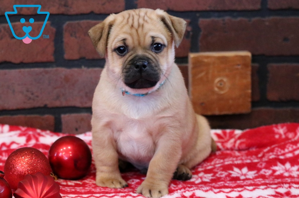 Rolo is a one-of-a-kind Jug with a big personality and an even bigger heart. He loves being around people and thrives on making new friends wherever he goes. Rolo is especially wonderful with kids. This cutie is vet checked, vaccinated, wormed, plus the breeder provides a 1 year genetic health guarantee. His momma is a Jack Russell (Sandy – around 20lbs.) & daddy is a Pug (Snickers – around 20lbs.). He’s not just a spectacular companion—he’s a beloved member of the family.