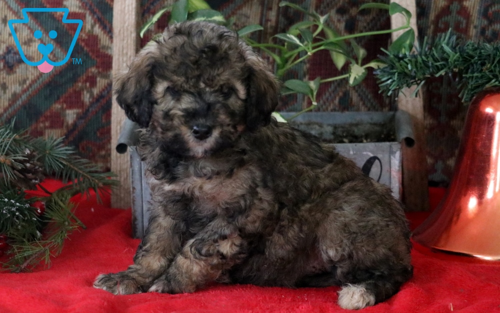 Playful yet calm, Ressie is a Mini Labradoodle who is always ready for a game of chase, a walk in the yard, or a snuggle with her favorite little humans. She’s incredibly social, loves meeting new people, and especially enjoys spending time with children. This sweet pea is vet checked, vaccinated, wormed, plus the breeder provides a 1 year genetic health guarantee. Her momma is a Mini Labradoodle (Kayla – 30lbs.) & daddy is a Mini Poodle (Whisper – 17lbs.). Ressie’s sweet demeanor and loving heart make her a cherished companion.